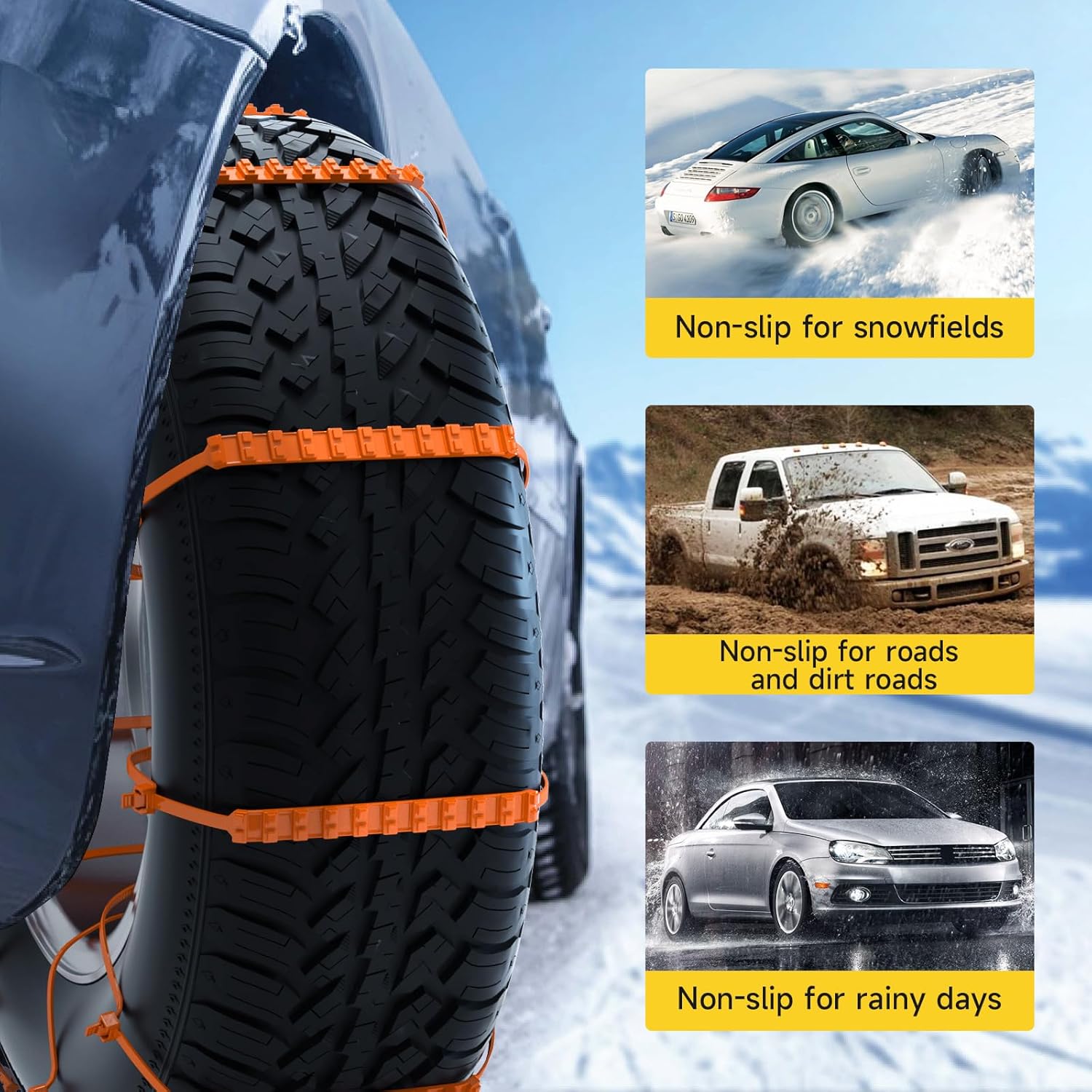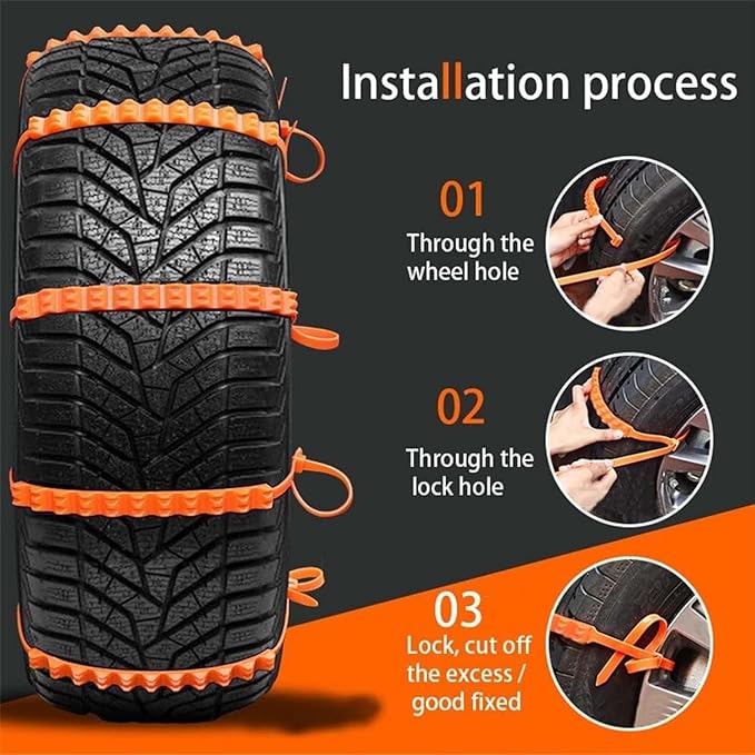 【Material】 100% pure nylon material, The snow tire straps made of high quality nylon material, high strength, good toughness, low temperature resistance -50℃ and wear resistance, New and Reusable.